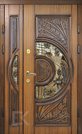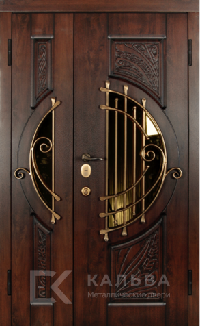 Фото «Железная двустворчатая дверь шоколадная с коваными ветвями и львиным молотком №112»